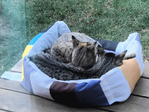 買ってきたベッドがすっかり気に入ったようで、2匹そろっていつもまったりと過ごしています。