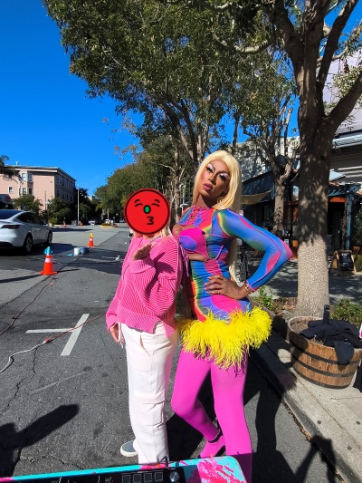 それでも、彼女がカーウォッシュのドラァグクイーンさんに興味を持って、「自分と服の色が同じなので一緒に写真を撮りたい」と言っていることだけは理解できたので、彼女を連れてお願いしに行ったところ、快く応じてくれました。写真を撮ってもらった妹さんは大喜びでした。