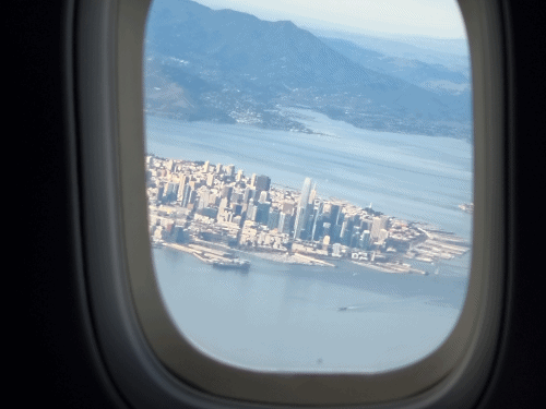 アメリカの航空会社では時折こうしたアテンダントに遭遇しますが、「サービス業が苦手なら、なぜこの仕事を?」と思ってしまうほどでした。以前ラスベガスへ行った時のユナイテッド便でも同じタイプの方が担当でしたね。気を取り直しつつ、飛行機は定刻通りにサンフランシスコを離陸しました。
