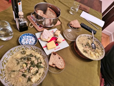 皆さんも大昔のことで、今思うと「あれはマウンティングだったな」という記憶はありますか?もしありましたら、ぜひコメント欄でシェアしてくださいね。今回の写真は、我が家の「やっつけ料理」の夕飯です。映えないひどい写真ですが、これもまた現実!備忘録として臆面もなく載せてしまいます。1枚目はシーフード・パッパルデッレ(幅広麺)のパスタ。2枚目は、ご近所の御年90歳になるお姉さんが作ってくれたスープ。3枚目は、豚肉を塩麹に漬けてグリルし、雑穀米と一緒に。そして最後の写真は、ロボット掃除機を不思議そうに見つめる野良猫さんでした。