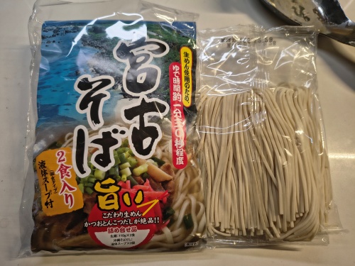 夏に沖縄へ行った際、宮古島で買ってきたスープ付きの宮古そば。長期保存ができるタイプでしたが、いよいよ賞味期限というタイムリミットが迫ってきました。僕の悪い癖なのですが、日本で買ってきた美味しそうなものや頂いたものは、もったいなくてなかなか使えないんですよね。