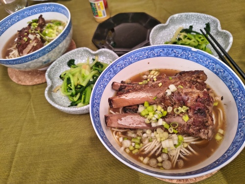 これにはDさんも大喜び。こちらでは宮古そばの麺自体はなかなか手に入りませんが、沖縄そばの冷凍麺なら売っているので、また絶対に作りたいと思える大満足のメニューとなりました。後日食べた煮込み大根も、旨味が凝縮されていて最高でしたよ。