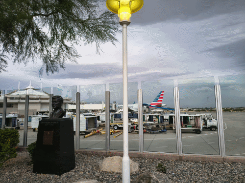 Palm Springsのダウンタウンから空港までは車で10分もかからないほど近く、非常に便利です。ほとんど雨が降らない街だからでしょうか、ロビーも開放的な造りになっています。預け入れ荷物の集積場すら、かろうじて屋根がかかっているだけというオープンな構造には驚かされました。