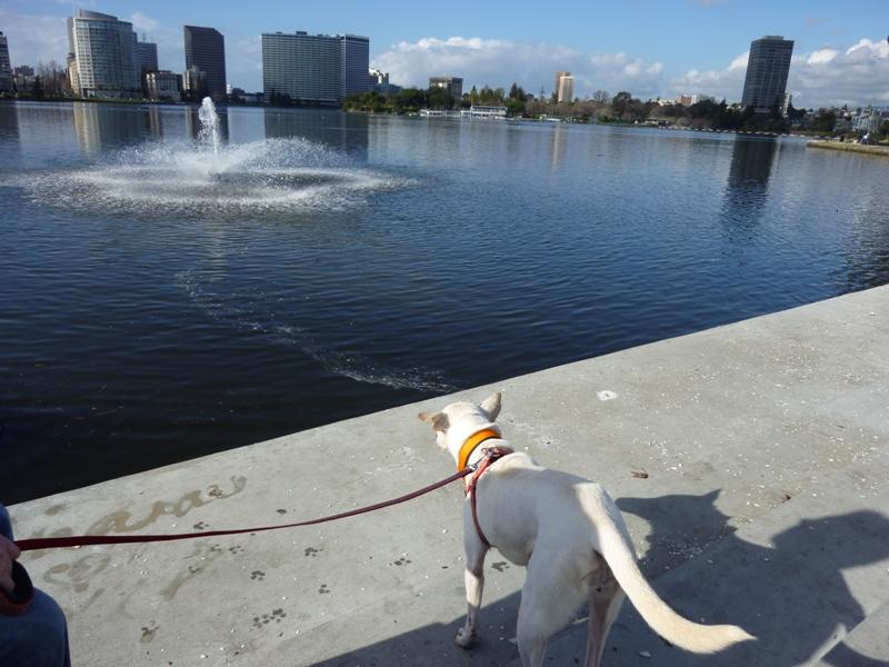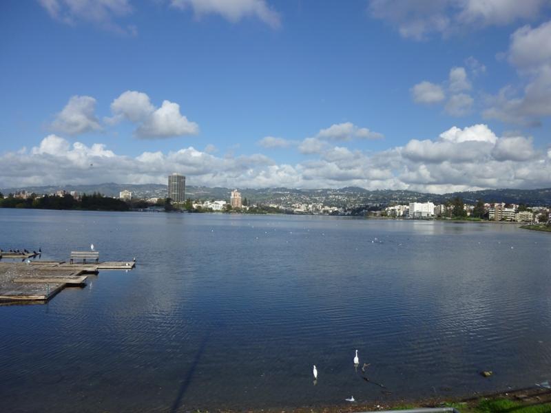 海の方はまだ風が強くて寒そうなので Dさんの提案で内陸部のLake Merrittの方へ行きました