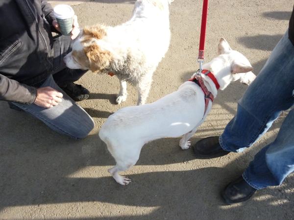 この犬の場合もとってもフレンドリーなのに 尻尾が完全に内側に巻かれてノックアウト状態