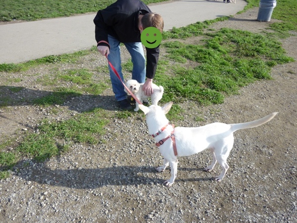 ははは~ 小さい犬に対しては優越感を感じることができるようです(笑)