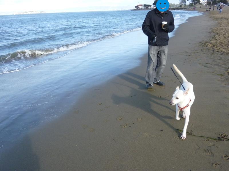 やはり範を示すべく、親(?)が率先して海水にどっぷり浸かり、寒さもいとわず、歓声をあげたりしながら波と楽しそうにたわむれて、Cocoに「たのしそ~っ!一緒に遊びた~い!!」って思わせるのが一番でしょうね~。次の週末実践してくださいね~。