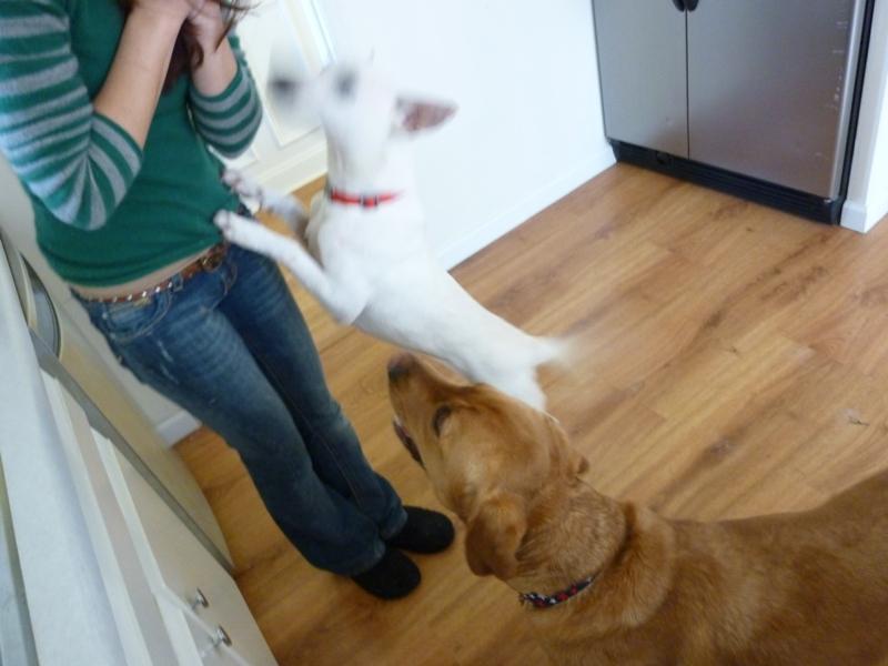 おやつをもらうには しっかり座っておとなしくしていなくてはいけないんだよ~と