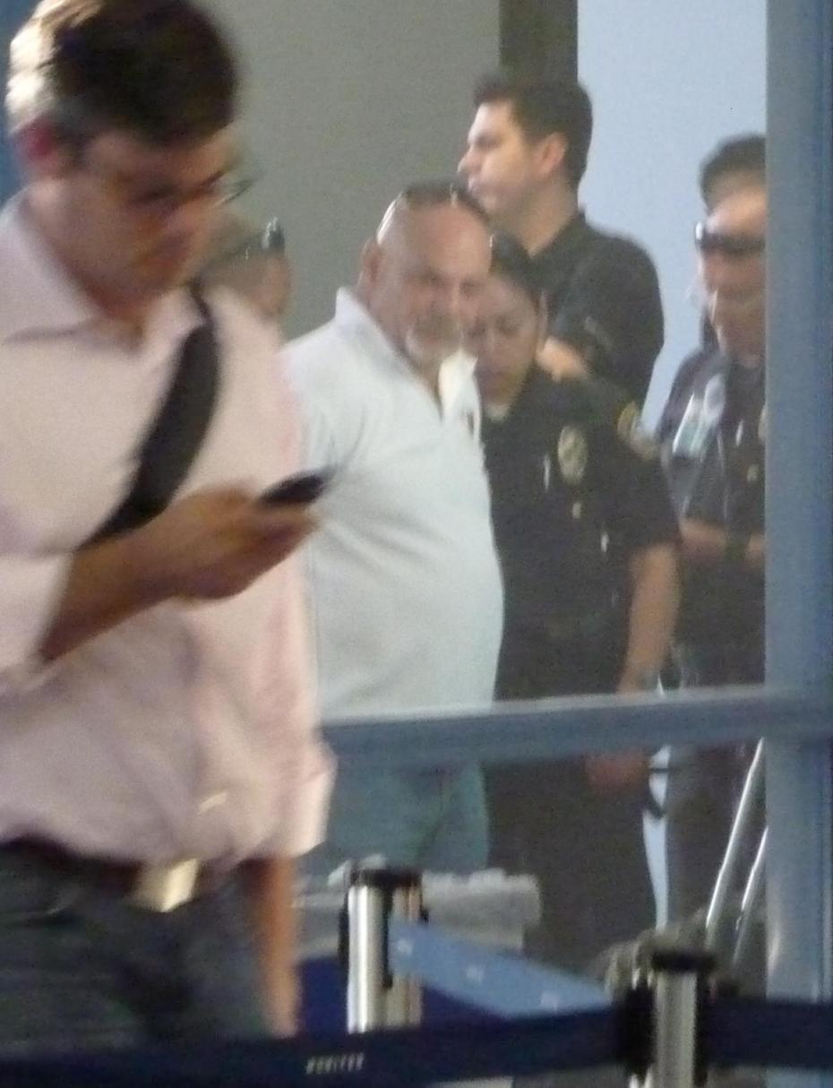 おじさんを検査する警官の手が・・・ちょっと微妙な位置にありますな(笑)