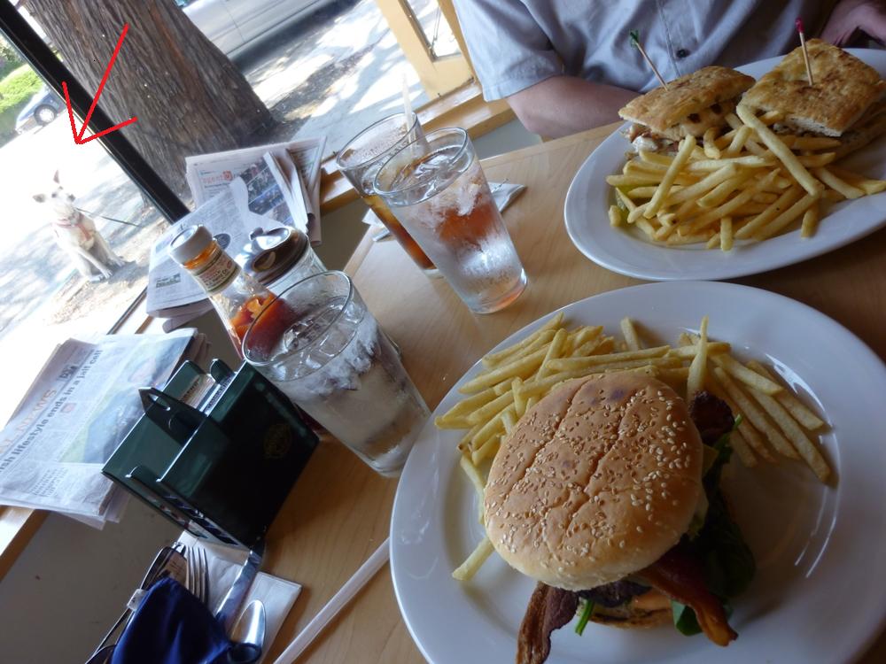 ちょうど窓際の席に付くことができましたのでもう一度車まで戻って Cocoをつれてきて