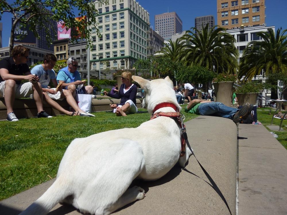 ユニオンスクエアーには思ったよりたくさんの人が犬を連れているんですね