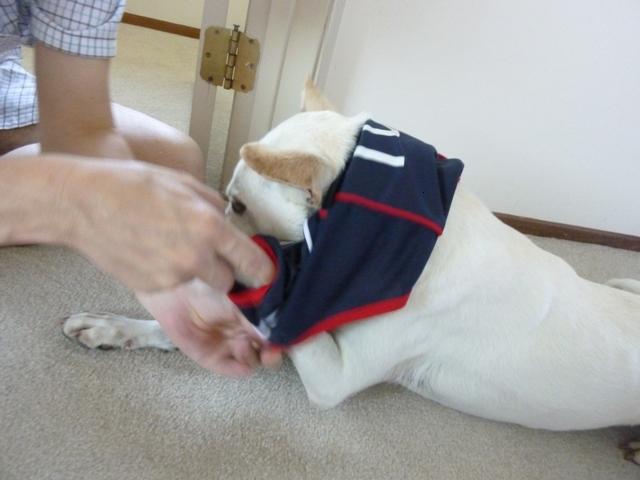 我が家の老婆犬(黒毛)は子犬の頃から服を着せようと試みましたが