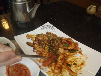 メイン?と言えるのはわかりませんが 豆腐チゲとイカの炒め物を頼んでみました