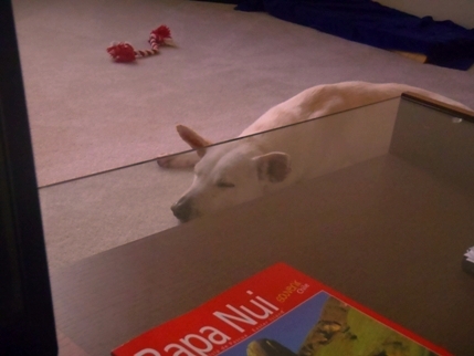 Cocoちゃん、よく寝てますね。。犬って基本的にただ起きているってことがないような。。何かする為に起きて、残りは全部寝ているような気がします。。うちは家族が相手にしないときは全部寝てます。でも、冷蔵庫を開けたら、二階からでもすっ飛んで来ますので、深くは寝てないみたいですね。。