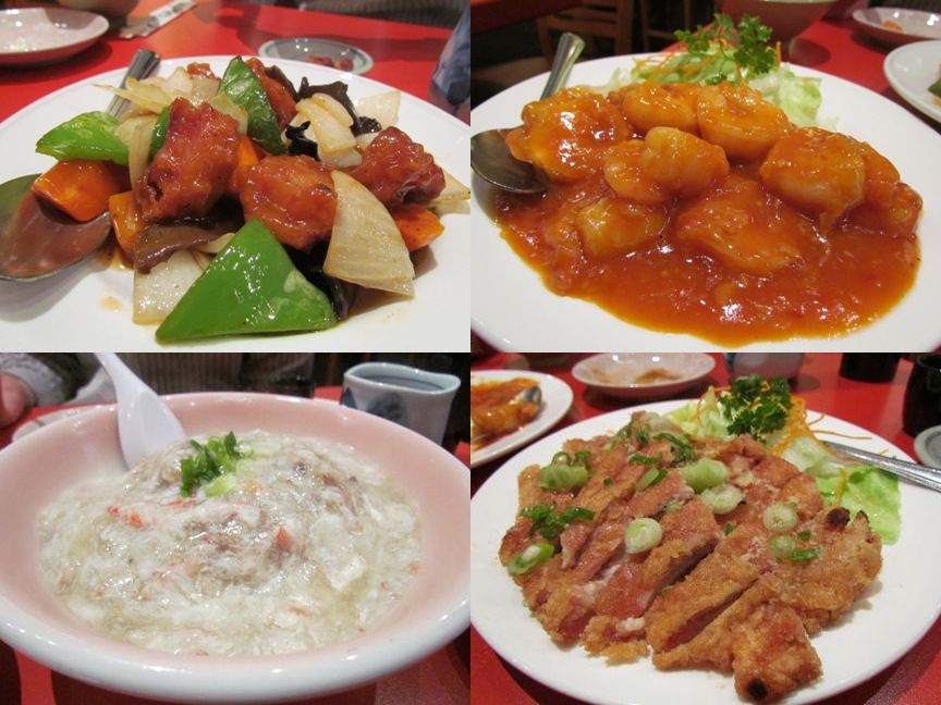 1・酢豚 2・エビチリ 3・遊楽チャーハン 4・ユーリンチー?(鳥の揚げ物)