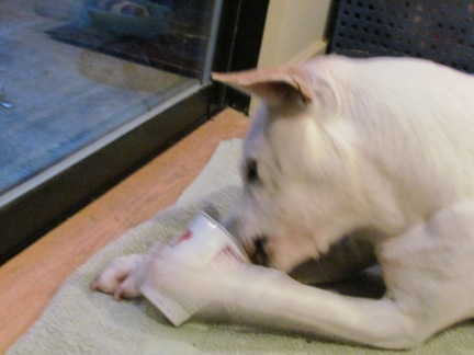 僕が食べたヨーグルトの残り物をあげたら 喜んで舐めまくっていました(笑)