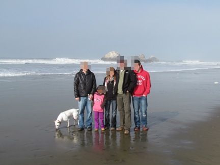 どこの国にいてもやっぱり海っていいものなんですね~ 記念撮影 左からCoco Dさん 娘 弟さんの奥さん 弟さん 息子くん