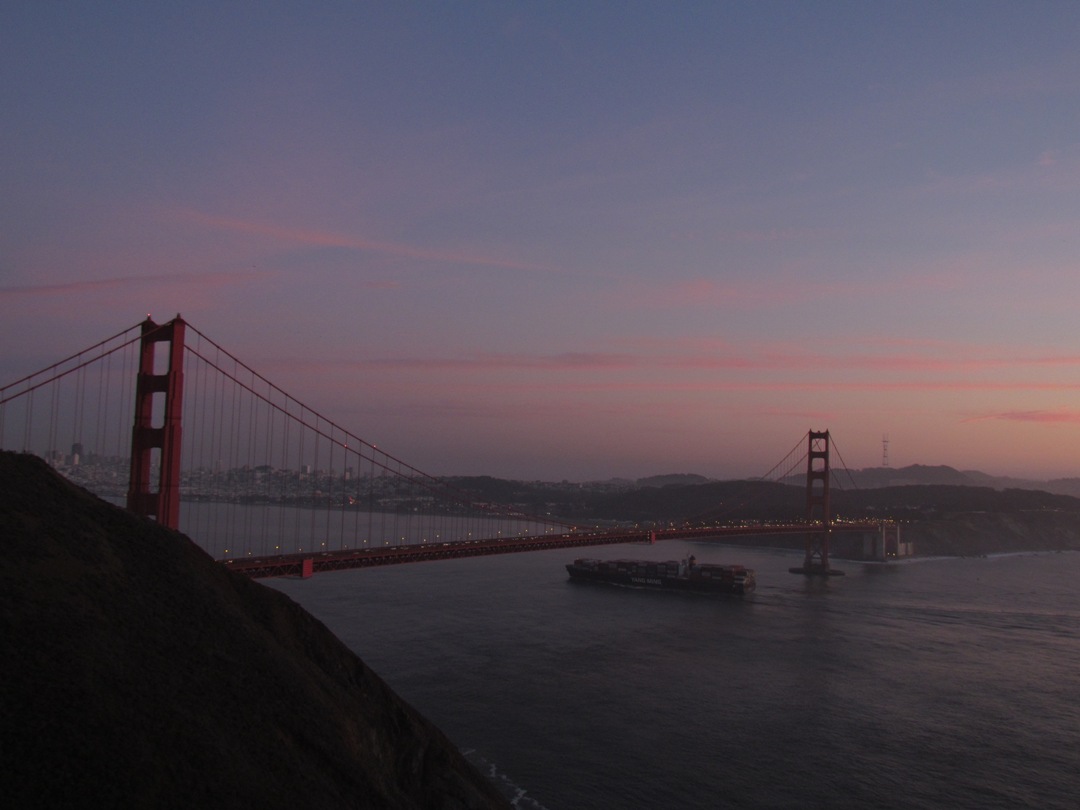 ちょうど太平洋の西の彼方へ日が沈み 夕焼けのグラデーションが雲に写り大変きれいでした こちらの方に住んでいても ゴールデンゲートっていつ見てもいいもの