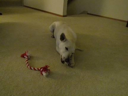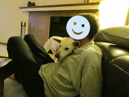 >夫とワンちゃんが私の取り合いしてました。(笑)