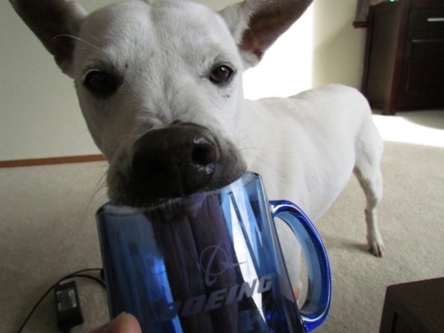夫とワンちゃんが私の取り合いしてました。(笑)