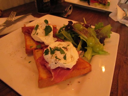 Dさんが頼んだのはポーチドエッグと生ハムのトーストのセット