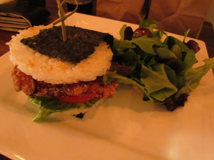 僕が頼んだのは鳥の唐揚げライスサンド?といった感じのもの