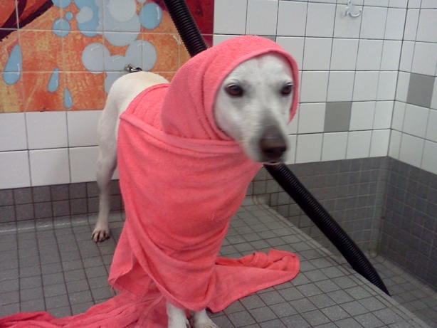実家で妹家族が飼っている犬も、シャンプーされるたびに同じような表情になって、ぐったりしています。