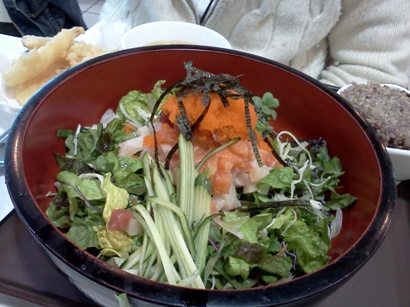 一緒に行ったこの方はサラダに刺身が乗っている大きな一品
