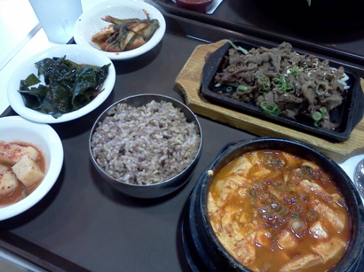 僕の方は豆腐チゲ 焼き肉 五穀米のセットを頼んでみました