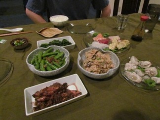 刺身 生牡蠣 イカのニンニク炒めとなりました 待望のモロヘイヤのおひたしは 癖が少なくあっさりしてとっても食べやすかった