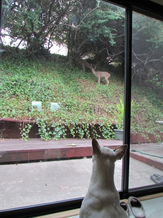 なんとなくかわいい写真になりましたので記念に載せておきましょう~ 鹿が来ると大騒ぎするCoco 僕たちがいるときは静かにさせることが出来ますが