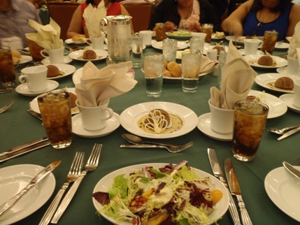 こういう食事会って各テーブルに10人くらいが座ることができるようになっていますので