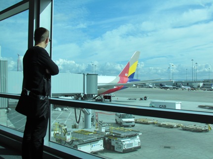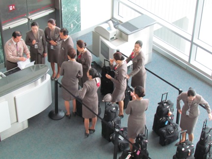 ラウンジを出てゲートに向かうとアシアナエアーのスッチーさんたちがチェックイン