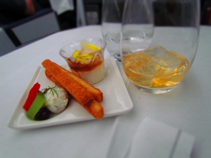 さて日記の続きですが 食事のサービスの前にドリンクとおつまみのサービスがありました