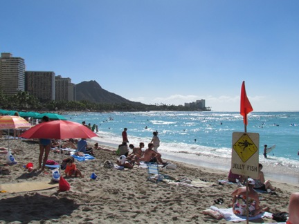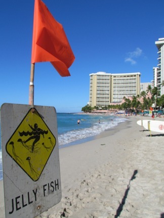 さてこの日 ワイキキビーチにはくらげ発生注意報が出ていまして