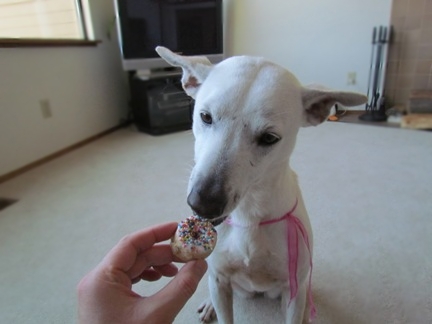 犬用ドーナッツと牛の味つきの骨を買ってきてお祝いしました~♪