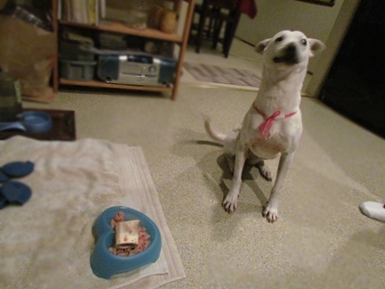(いつもと違う美味しそうなにおいに待ちきれず興奮状態 変顔がとってもおもしろいから載せておきましょう~)