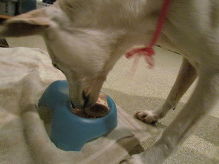 いつものドライフードとは違ってフレッシュな犬飯はとってもおいしかったようです