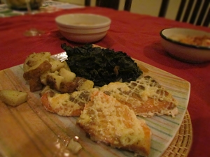 付け合せには カラードグリーンを炒めたものと