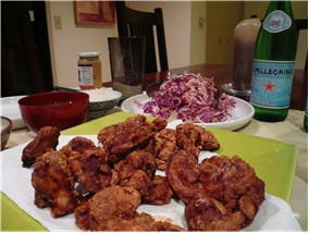 ごく普通~の鳥の唐揚げと赤キャベツのサラダ!!