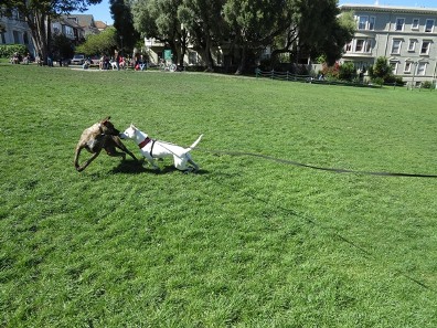 他の犬がじゃれてくると闘争心バリバリで向かっていくのでこららがハラハラしてしまいます