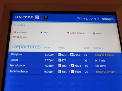 UALは7:40に出るのは無理なことは承知 本当は120分以上遅れるのはわかっているのに