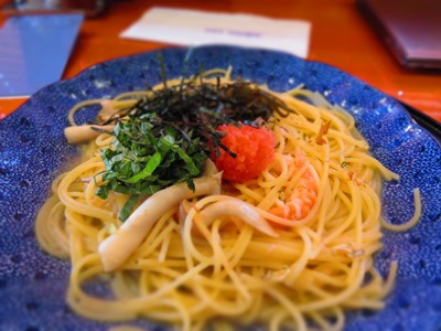 僕はパスタ屋でキノコとエビの明太子スパゲティーをいただきました