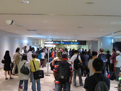 入国審査所が激混み! この時間ならもうフライトもないだろうと踏んでいましたが甘かった・・・ 日本のように一列になって 新しく窓口が開いても列の最初の人がちゃんと先に進めるシステムではなく