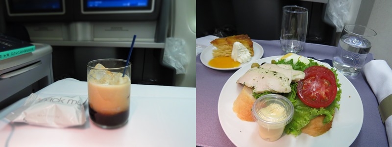 夜のフライトなのに何故か?オープンサンドイッチ・・・