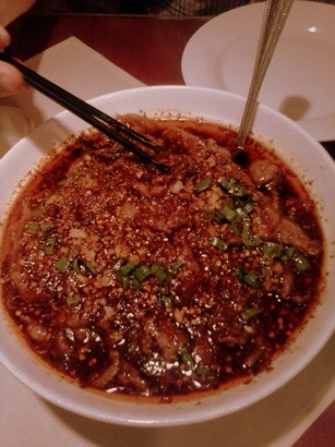 今回頼んだのは上の写真のこの店の一押し 四川風茹で牛肉