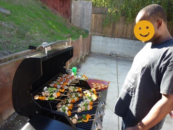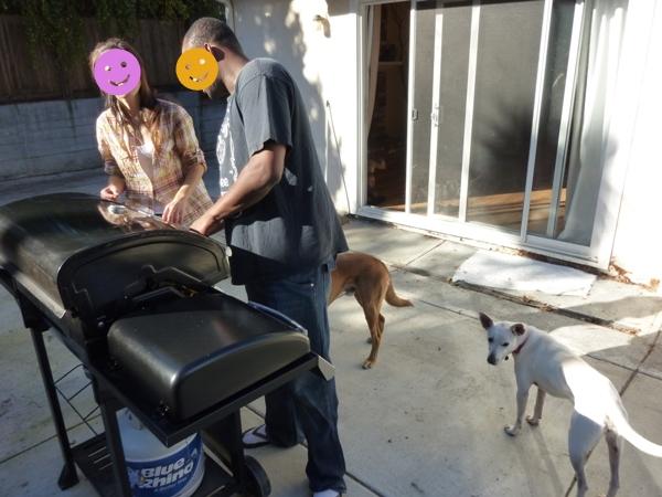 例のBBQグリルでじっくりと炭火で焼いてみました