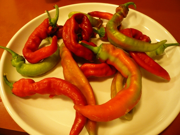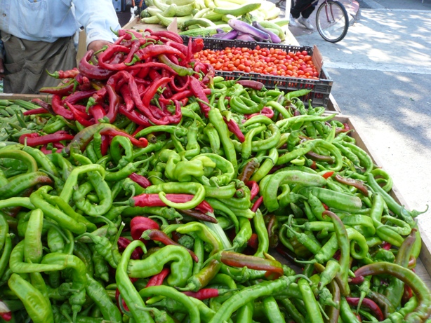 緑のしし唐は 当たり前ですが ここでは赤いしし唐が売っていたり