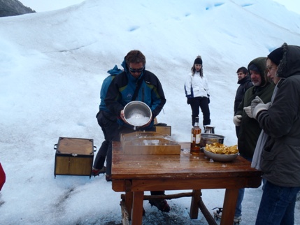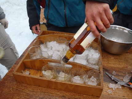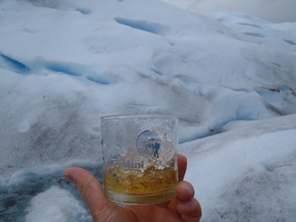 トレッキングの終わりは 氷河の上で氷河オンザロックのウィスキー♪