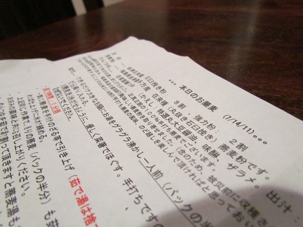 このお蕎麦にはちゃんと作り方や使用材料も明記されています